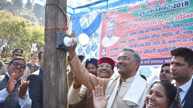 आज का दिन घेस के लोगों के लिए ऐतिहासिक रहा जब आजादी के 70 वर्षों के बाद वहां बिजली पहुंचाई गई है। मुख्यमंत्री ने औपचारिक रूप से स्विच आॅन कर गांव में बिजली का शुभारम्भ किया। मुख्यमंत्री व केंद्रीय आयुष मंत्री श्रीपद नायक ने क्षेत्र में उत्पादित जड़ी बुटी कुटकी व अन्य उत्पादों का अवलोकन किया और ग्रामीणों से उनकी समस्याओं के बारे में जानकारी प्राप्त की।