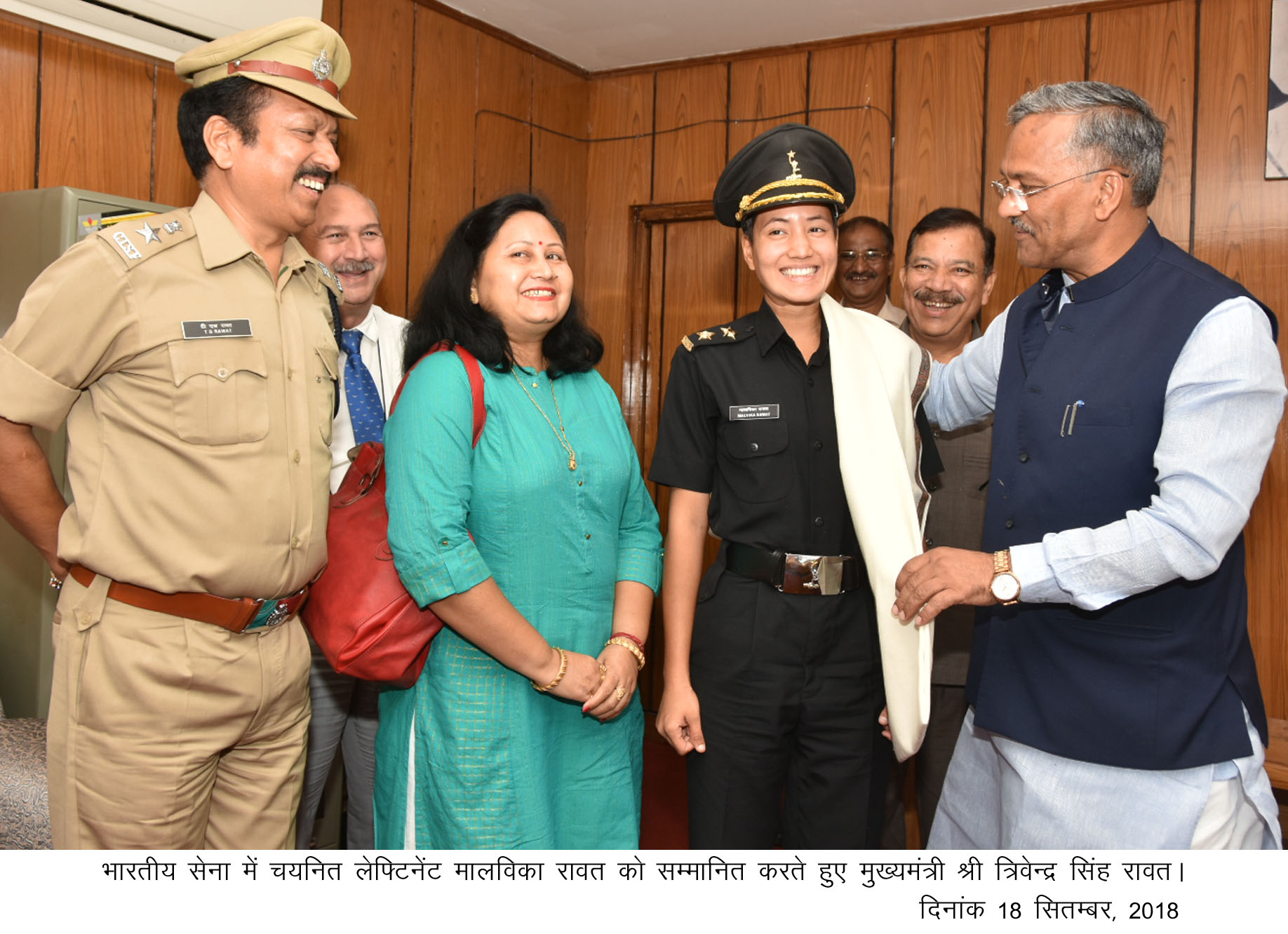 मुख्यमंत्री त्रिवेन्द्र सिंह रावत ने विधानसभा भवन में हाल ही में भारतीय सेना में चयनित लेफ्टिनेंट मालविका रावत को सम्मानित किया।