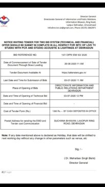 ऐसे में प्रश्न यह उठता है कि सूचना एवं लोक सम्पर्क विभाग द्वारा “SITC Technical and financial LIVE TV Studio with PCR Studio acoustic and lighgting at Dehradun” बिषयक जो विज्ञापन जारी किया गया था क्या वह नियम सम्मत है?