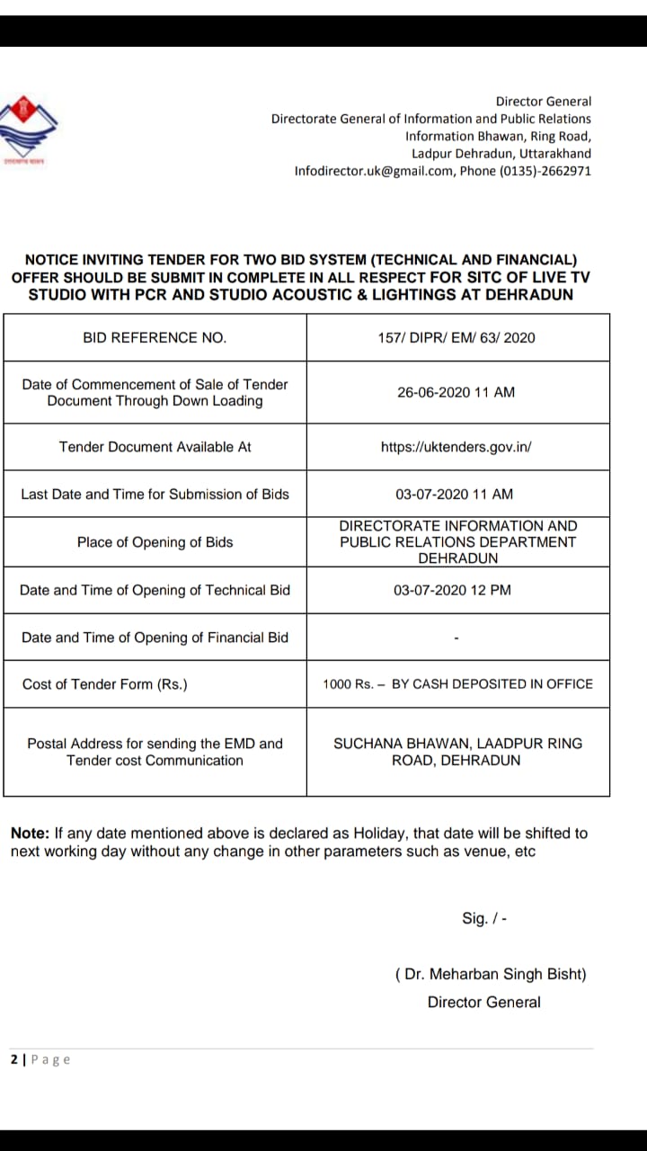 ऐसे में प्रश्न यह उठता है कि सूचना एवं लोक सम्पर्क विभाग द्वारा “SITC Technical and financial LIVE TV Studio with PCR Studio acoustic and lighgting at Dehradun” बिषयक जो विज्ञापन जारी किया गया था क्या वह नियम सम्मत है?