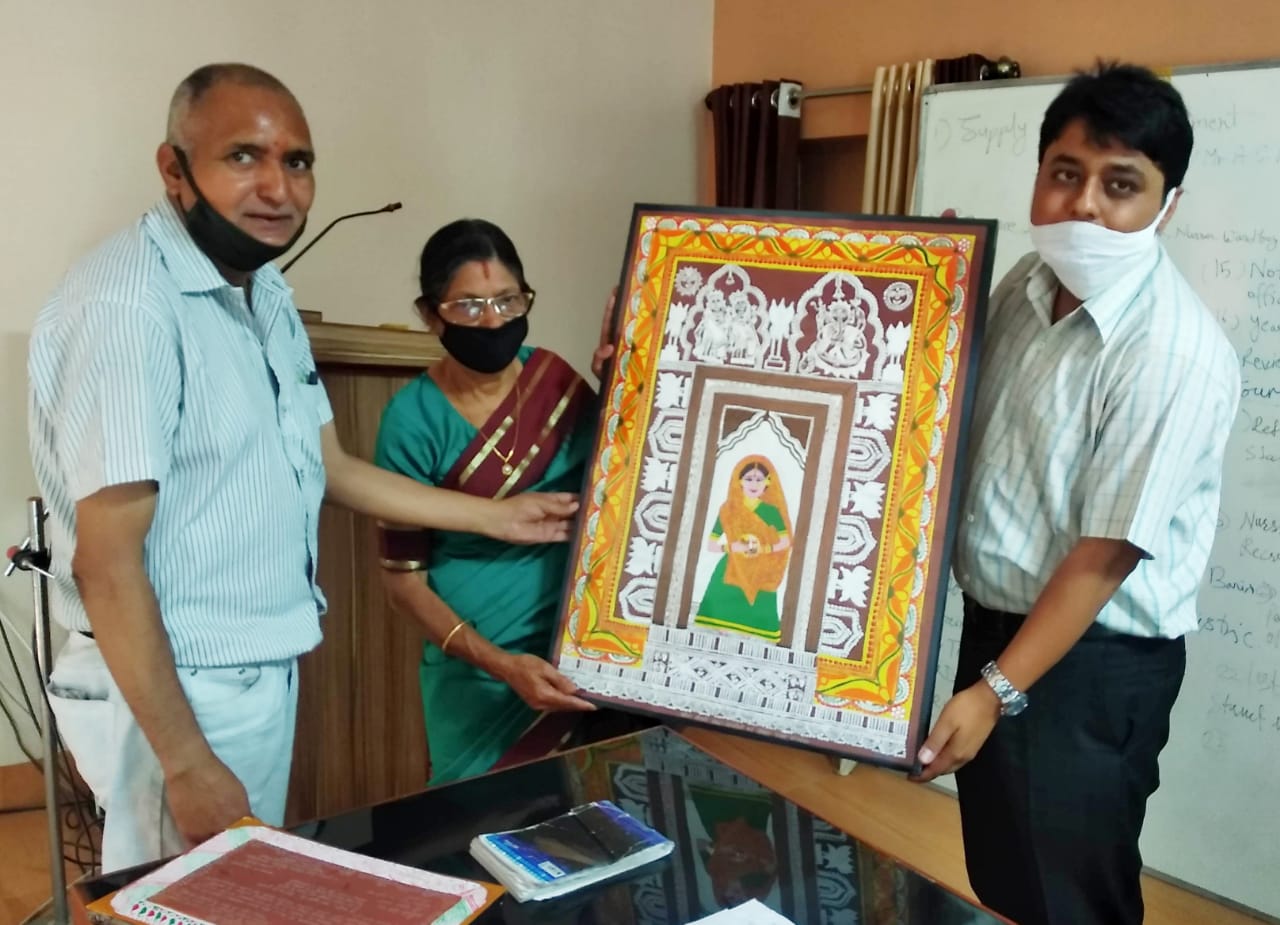 इस अवसर पर श्रीमती जोशी ने स्वनिर्मित अल्पना के बारे में जिलाधिकारी को विस्तारपूर्वक बताया और इसके महत्व के बारे में जानकारी दी। जिलाधिकारी ने अल्पना हेतु श्रीमती जोशी को हार्दिक धन्यवाद दिया।