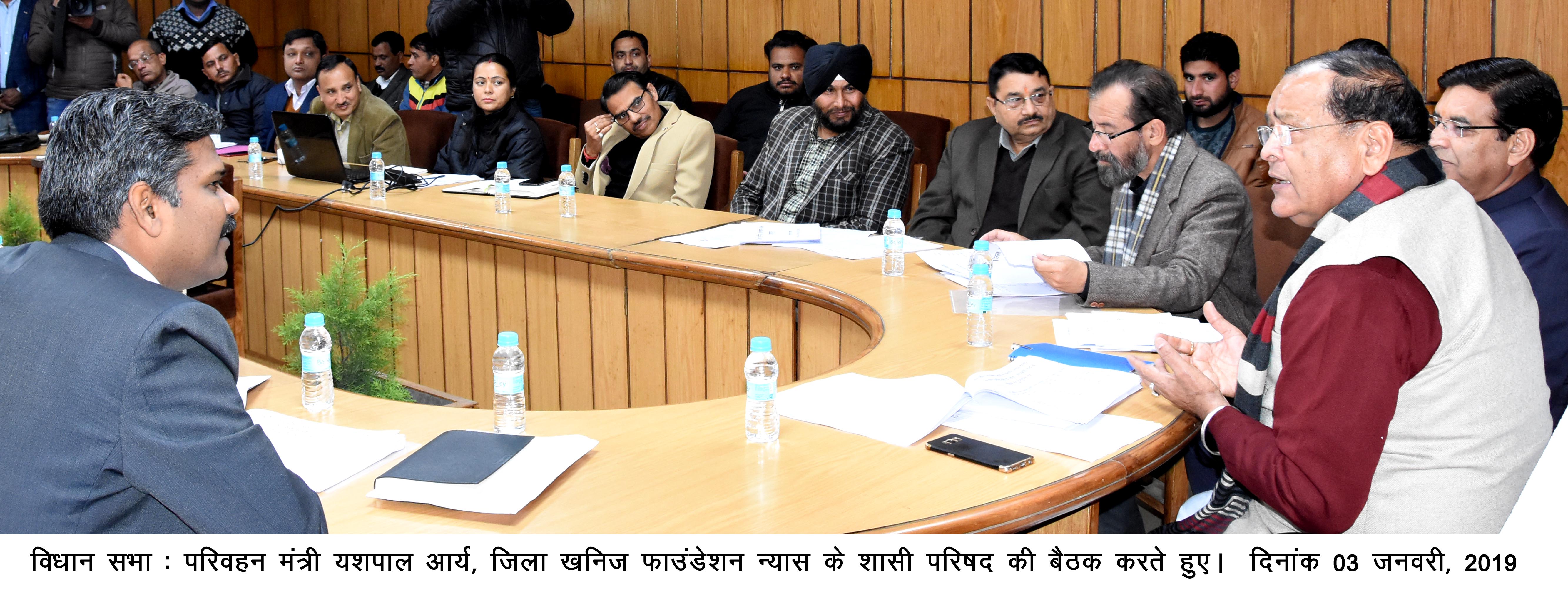 प्रदेश के परिवहन, समाज कल्याण, अल्पसंख्यक कल्याण, छात्र कल्याण, ग्रामीण तालाब विकास, सीमान्त क्षेत्र विकास, परिक्षेत्र विकास एवं प्रबन्धन, पिछड़ा क्षेत्र विकास मंत्री यशपाल आर्य ने विधान सभा सभाकक्ष में जिला खनिज फाउंडेशन न्यास के शासी परिषद की बैठक की अध्यक्षता की।