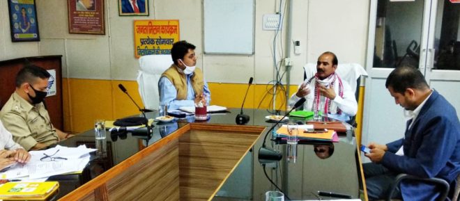 कोरोना वायरस संक्रमण रोकने के सम्बन्ध में की जा रही तैयारियों की बैठक सांसद अजय टम्टा द्वारा कलैक्ट्रेट सभागार में ली। बैठक में जिला प्रशासन, पुलिस, स्वास्थ्य विभाग सहित अन्य अधिकारियांे द्वारा प्रतिभाग किया गया।