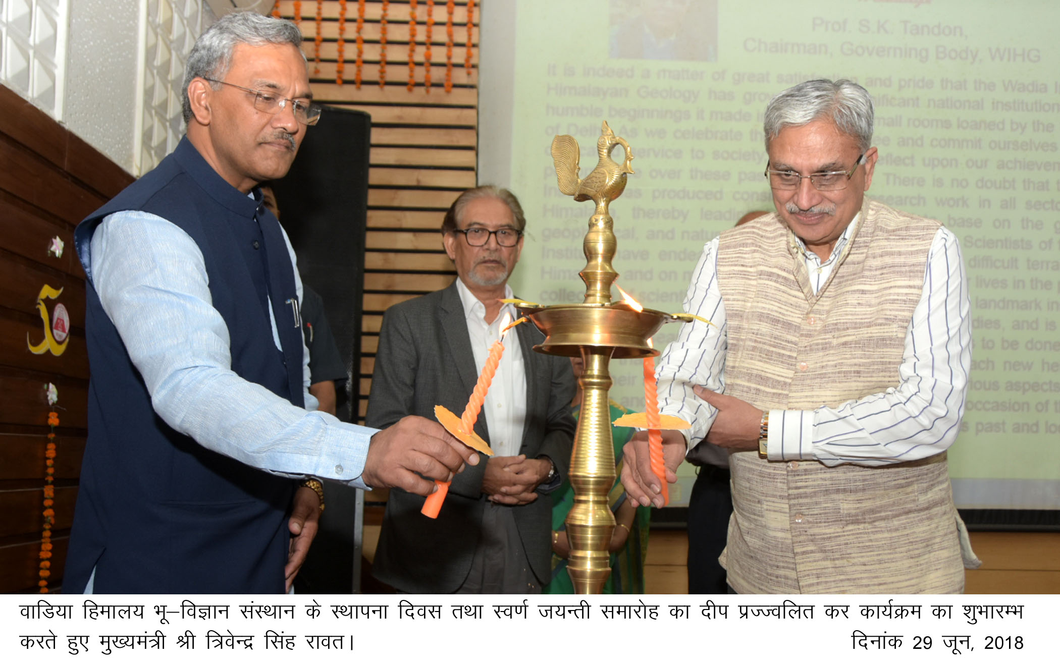 - मुख्यमंत्री श्री त्रिवेन्द्र सिंह रावत ने वाडिया हिमालय भूविज्ञान संस्थान के स्वर्ण जयंती समारोह में प्रतिभाग किया।