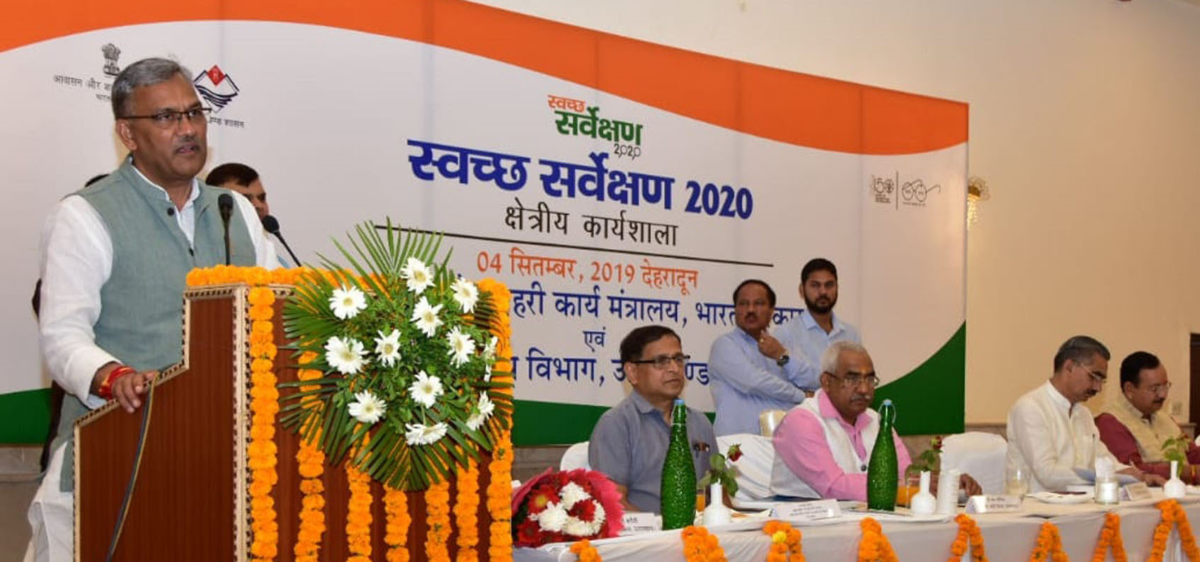 मुख्यमंत्री त्रिवेन्द्र सिंह रावत एवं शहरी विकास मंत्री मदन कौशिक ने देहरादून के स्थानीय होटल में स्वच्छ सर्वेक्षण-2020 विषय पर नगर निकायों एवं छावनी परिषदों की एक दिवसीय कार्यशाला का दीप प्रज्ज्वलित कर शुभारम्भ किया।
