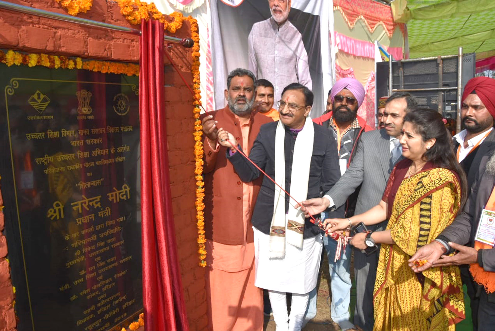 लालढांग में स्थापित होने वाले माॅडल डिग्री काॅलेज के शिलान्यास कार्यक्रम में सांसद डाॅ.रमेश पोखरियाल निशंक, विधायक श्री यतीश्वरानन्द, अपर मुख्य सचिव डाॅ. रणवीर सिंह, उपाध्यक्ष उच्च शिक्षा उन्नयन समिति श्रीमती दीप्ति रावत आदि उपस्थित थे। इस अवसर पर सांसद डाॅ.रमेश पोखरियाल निशंक ने कहा कि लालढांग के मीठी बेरी में स्थापित होने वाले इस माॅडल डिग्री काॅलेज से पूरे क्षेत्र में आदर्श व रोजगारपरक शिक्षा उपलब्ध होगी तथा इस क्षेत्र के युवाओं की प्रतिभा को मुखर होकर उभरने का मौका मिलेगा। किच्छा के खुरपिया फार्म में 13 एकड़ भूमि पर बनने वाले मॉडल डिग्री कॉलेज के शिलान्यास कार्यक्रम में विधायक राजेश शुक्ला, जिलाधिकारी नीरज खैरवाल, उच्च शिक्षा निदेशक बी.सी.मलकानी उपस्थित थे। विधायक राजेश शुक्ला ने कहा किच्छा की तरक्की के दिन अब शुरू हो गए है। उन्होंने कार्यदाई संस्था से ऐसा भवन बनाने की अपील की जो टिके भी, उसकी गुणवत्त्ता एक मिसाल बने।