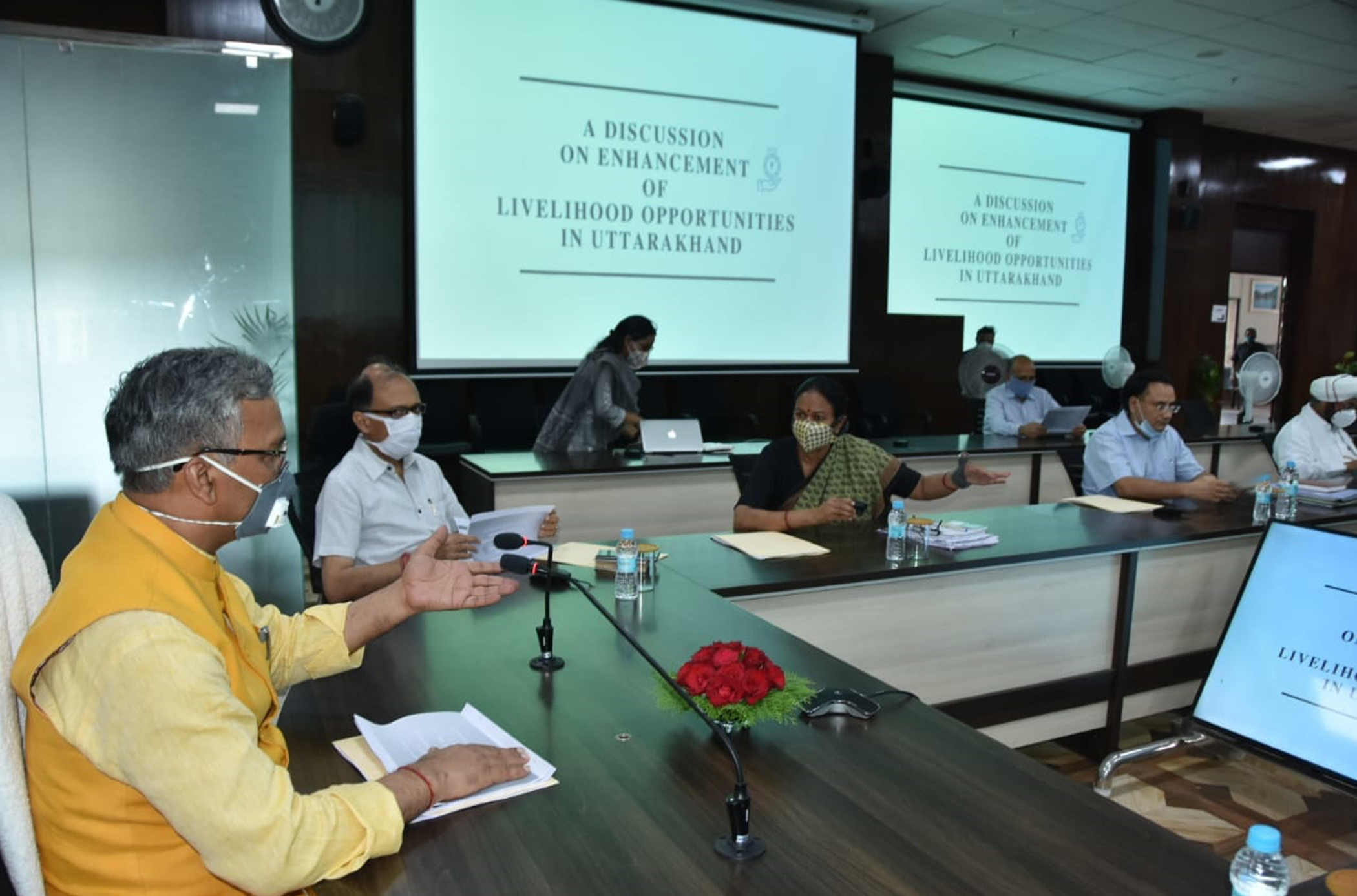 मुख्य सचिव उत्पल कुमार सिंह ने कहा कि कोविड के कारण जो लोग उत्तराखण्ड वापस आये हैं, कितने लोग यहीं रहकर कार्य करना चाहते हैं, उनकी शैक्षिक एवं अन्य योग्यताओं का विश्लेषण एवं किस-किस क्षेत्र में कार्य करना चाहते हैं, इसका सर्वे होना जरूरी है। अगले तीन माह में हम लोगों को आजीविका से कैसे जोड़ सकते हैं और विभिन्न क्षेत्रों में कार्य करने के लिए उनको प्रशिक्षण की व्यवस्थाएं करनी होंगी। केन्द्र एवं राज्य सरकार द्वारा विभिन्न क्षेत्रों में लोगों को आजीविका से जोड़ने के लिए अनेक योजनाएं लाई गई हैं। हमें इसके सफल क्रियान्वयन के लिए मिलकर प्रयास करने होंगे। उन्होंने कहा कि मनरेगा के तहत रजिस्टर्ड प्रत्येक गांव के लोगों की सूची को टारगेट किया जाय, उनकी आजीविका को बढ़ाने के लिए और भी प्रयासों की जरूरत है। लोगों को आत्मनिर्भर बनाने एवं आर्थिक रूप से मजबूत बनाने में हम सबको मिलकर प्रयास करने होंगे। इस अवसर पर प्रदेश में आजीविका को बढ़ाने के लिए अधिकारियों ने अपने सुझाव दिये।