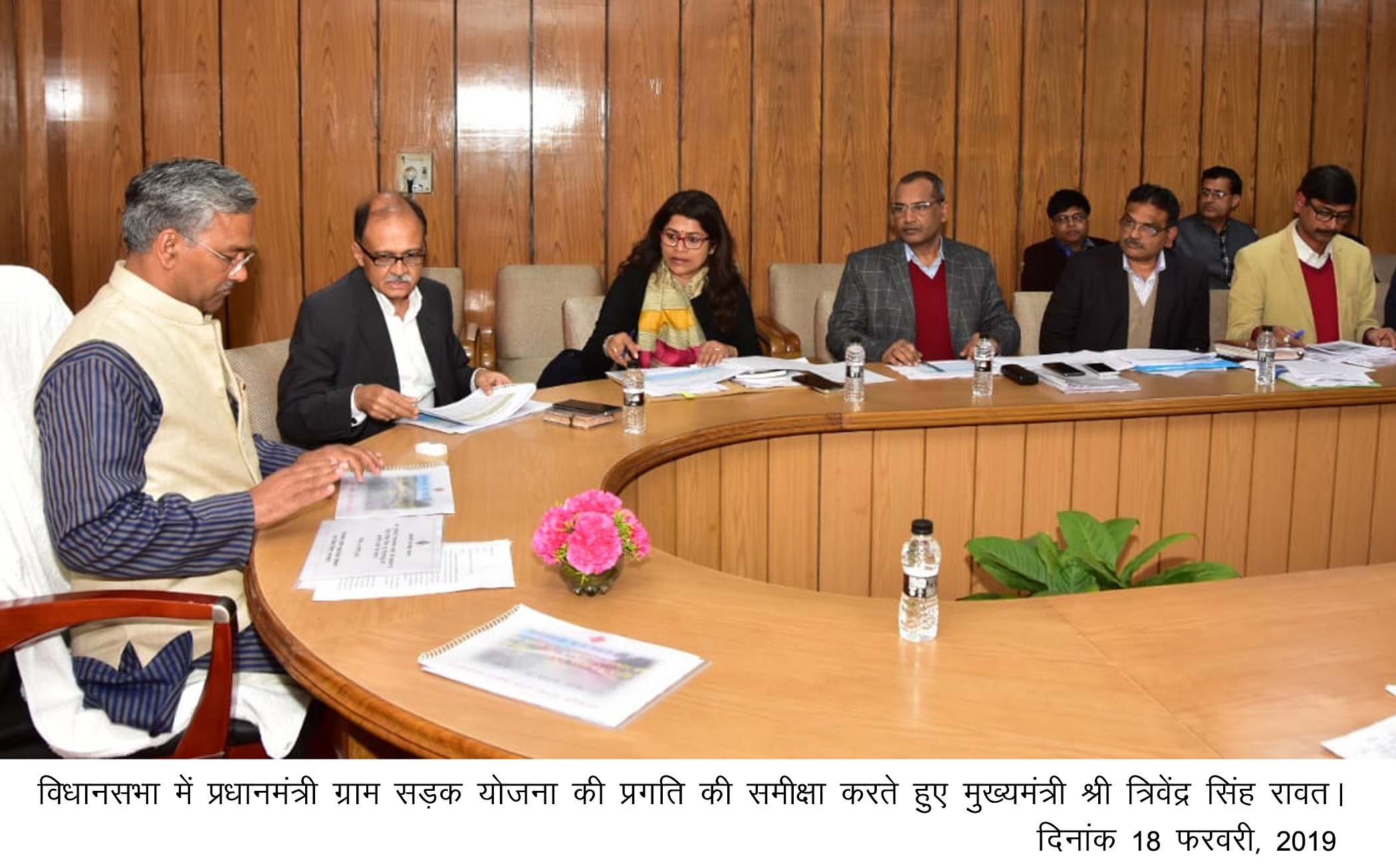 मुख्यमंत्री त्रिवेंद्र सिंह रावत ने विधानसभा में प्रधानमंत्री ग्राम सड़क योजना की प्रगति की समीक्षा की। मुख्यमंत्री ने सभी कार्यदायी संस्थाओं को निर्धारित लक्ष्यों को तय समयसीमा में पूर्ण करने के निर्देश दिए। उन्होंने कहा कि सड़कों के निर्माण कार्य में गति के साथ-साथ गुणवत्ता का भी विशेष ध्यान रखा जाए। उन्होंने कार्य कि गति में तेजी लाने के निर्देश देते हुए कहा कि हम सभी को टीम भावना से कार्य करते हुए उत्तराखण्ड को देश के सर्वश्रेष्ठ राज्य के तौर पर स्थापित करना है। इसमें सरकार, शासन, प्रशासन, विभिन्न संस्थाओं व राज्य के सभी नागरिकों को मिलकर कार्य करना होगा।