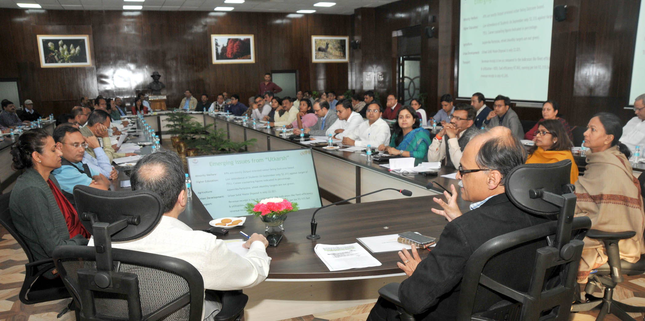 बैठक में अपर मुख्य सचिव डॉ रणवीर सिंह, राधा रतूड़ी, प्रमुख सचिव गृह आनंद बर्धन, प्रमुख सचिव उद्योग मनीषा पंवार, सचिव वित्त अमित नेगी, सचिव वन अरविंद सिंह ह्यांकी, सचिव शहरी विकास शैलेश बगोली, सचिव शिक्षा भूपेन्द्र कौर औलख, अपर सचिव मुख्यमंत्री आशीष श्रीवास्तव सहित अन्य अधिकारी उपस्थित थे।