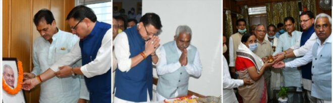 मुख्यमंत्री पुष्कर सिंह धामी ने सोमवार को विधानसभा में विधानसभा के मानसून सत्र के पहले दिन पर्यावरणविद् एवं चिपको आंदोलन के प्रणेता, पद्म विभूषण स्वर्गीय सुंदरलाल बहुगुणा जी के चित्र पर माल्यार्पण कर उन्हें श्रद्धांजलि अर्पित की।