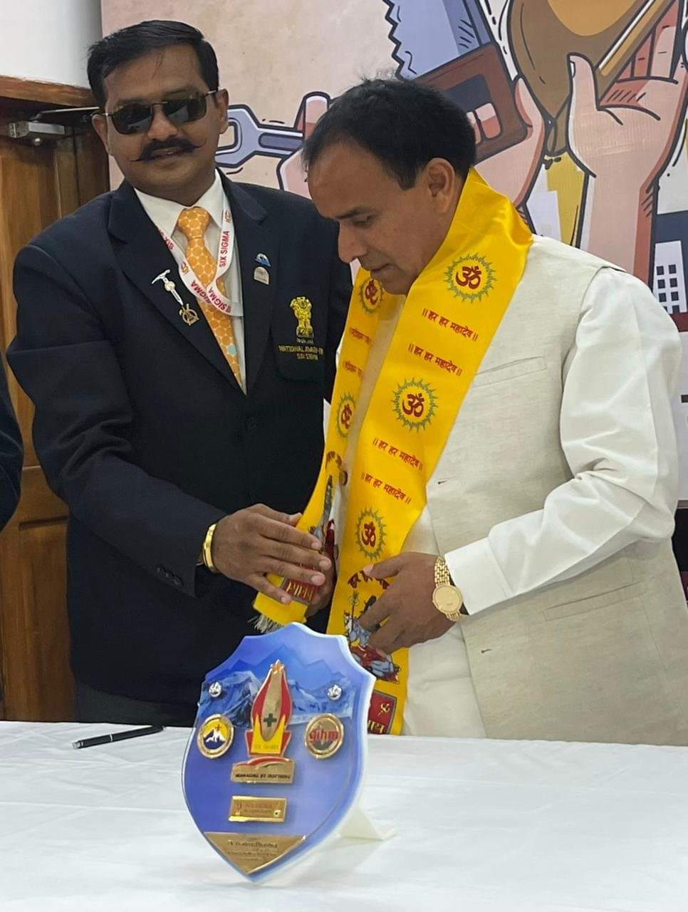 नोट – फोटो सिक्स सिग्मा के डायरेक्टर प्रदीप भारद्वाज की है। कोट पर लगा अशोक चिन्ह देखिए। मुझे नहीं पता कि यह ‘द स्टेट एंबलम ऑफ इंडिया’ ((प्रिहेब्शन ऑफ इंप्रापर यूज)) एक्ट 2005 के दायरे में आता है या नहीं। यदि आता है तो इस पर तुरंत एफआईआर दर्ज होनी चाहिए। इस केस में सेक्शन तीन के तहत दो साल की सजा का प्रावधान है।