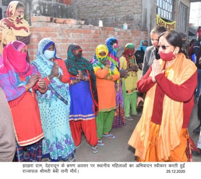 राज्यपाल बेबी रानी मौर्य ने शुक्रवार को भारत रत्न पूर्व प्रधानमंत्री स्व. अटल बिहारी वाजपेयी की जयंती के अवसर पर झाझरा ग्राम का दौरा कर वहां गरीब बच्चों एवं परिवारों को ऊनी वस्त्र एवं कम्बल वितरित किये। इस अवसर पर राज्यपाल श्रीमती मौर्य के आमंत्रण पर बाल निकेतन देहरादून के 30 बच्चे राजभवन भ्रमण पर आये। इन बच्चों को भी ऊनी वस्त्र वितरित किये गये। राज्यपाल श्रीमती मौर्य ने देहरादून की अन्य कुछ बस्तियों में भी आज लगभग 500 कम्बल तथा किट वितरित करवाये है।