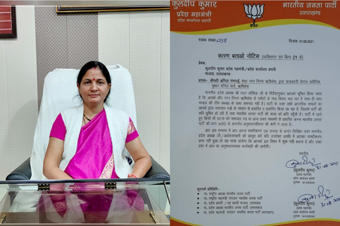 ऋषिकेश मेयर अनिता ममगांई को भाजपा संगठन ने भेजा कारण बताओ नोटिस। धारा (25 घ) के तहत पाया अनुशासन हीनता का दोषी।