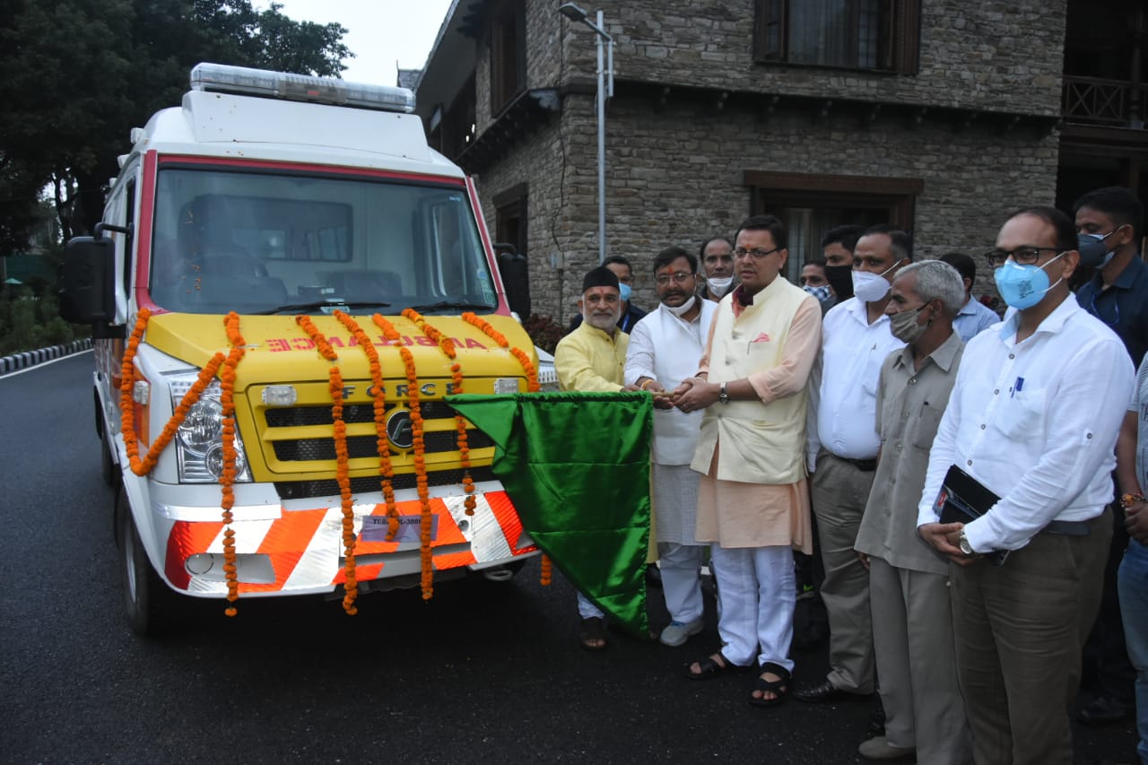 मुख्यमंत्री पुष्कर सिंह धामी ने शुक्रवार को मुख्यमंत्री कैम्प कार्यालय में संवेदना फाउण्डेशन द्वारा ब्रह्मोस एयरोस्पेस प्राइवेट लिमिटेड एवं क्रि फाउण्डेशन दिल्ली के सहयोग से आधुनिक सुविधा युक्त एम्बुलेंस को हरी झंडी दिखाकर जनपद रूद्रप्रयाग के लिये रवाना किया।
