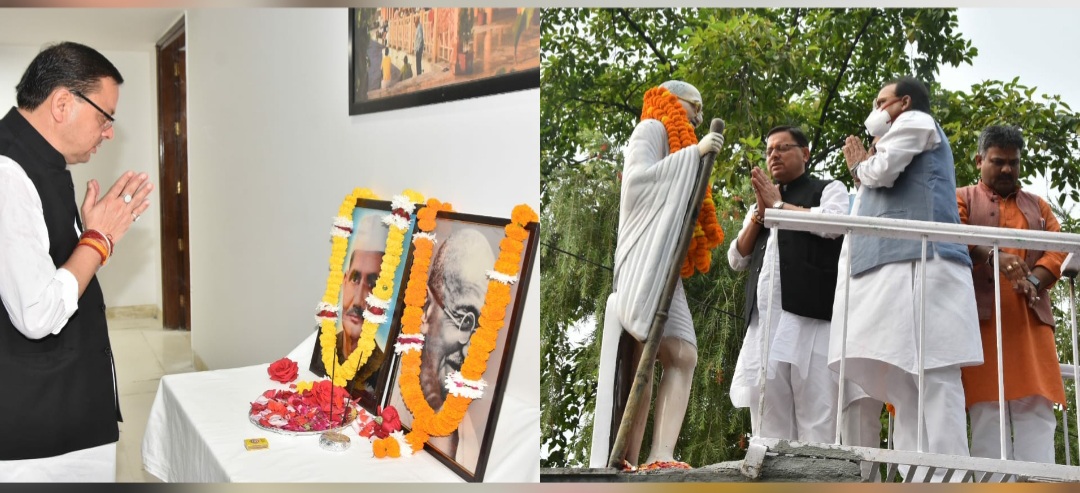 मुख्यमंत्री पुष्कर सिंह धामी ने मुख्यमंत्री आवास में राष्ट्रपिता महात्मा गांधी एवं पूर्व प्रधानमंत्री लाल बहादुर शास्त्री जी के चित्र पर श्रद्धासुमन अर्पित कर श्रद्धांजलि दी।