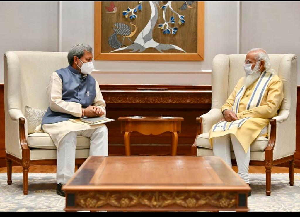 मुख्यमंत्री तीरथ सिंह रावत ने सोमवार को नई दिल्ली में प्रधानमंत्री  नरेन्द्र मोदी से भेंट की। आधा घंटे चली मुलाक़ात में मुख्यमंत्री ने देश में 18 वर्ष की आयु से ऊपर वाले समस्त भारतीयों का कोरोना टीकाकरण मुफ़्त किए जाने, 80 करोड़ लोगों को मुफ़्त अनाज देने के लिए व राज्य को ऋषिकेश-कर्णप्रयाग रेल-लाईन की सौगात देने हेतु आभार व्यक्त किया। मुख्यमंत्री ने कहा कि प्रधानमंत्री के अभूतपूर्व वीजन के तहत राज्य के चारधामों में सड़कों का कार्य तीव्र गति से चल रहा है । मुख्यमंत्री ने कहा कि उत्तराखण्ड के वित्तीय संसाधन अत्यन्त सीमित है, इस अवसर पर मुख्यमंत्री ने प्रधानमंत्री को कंडाली की जैकेट भी भेंट की।