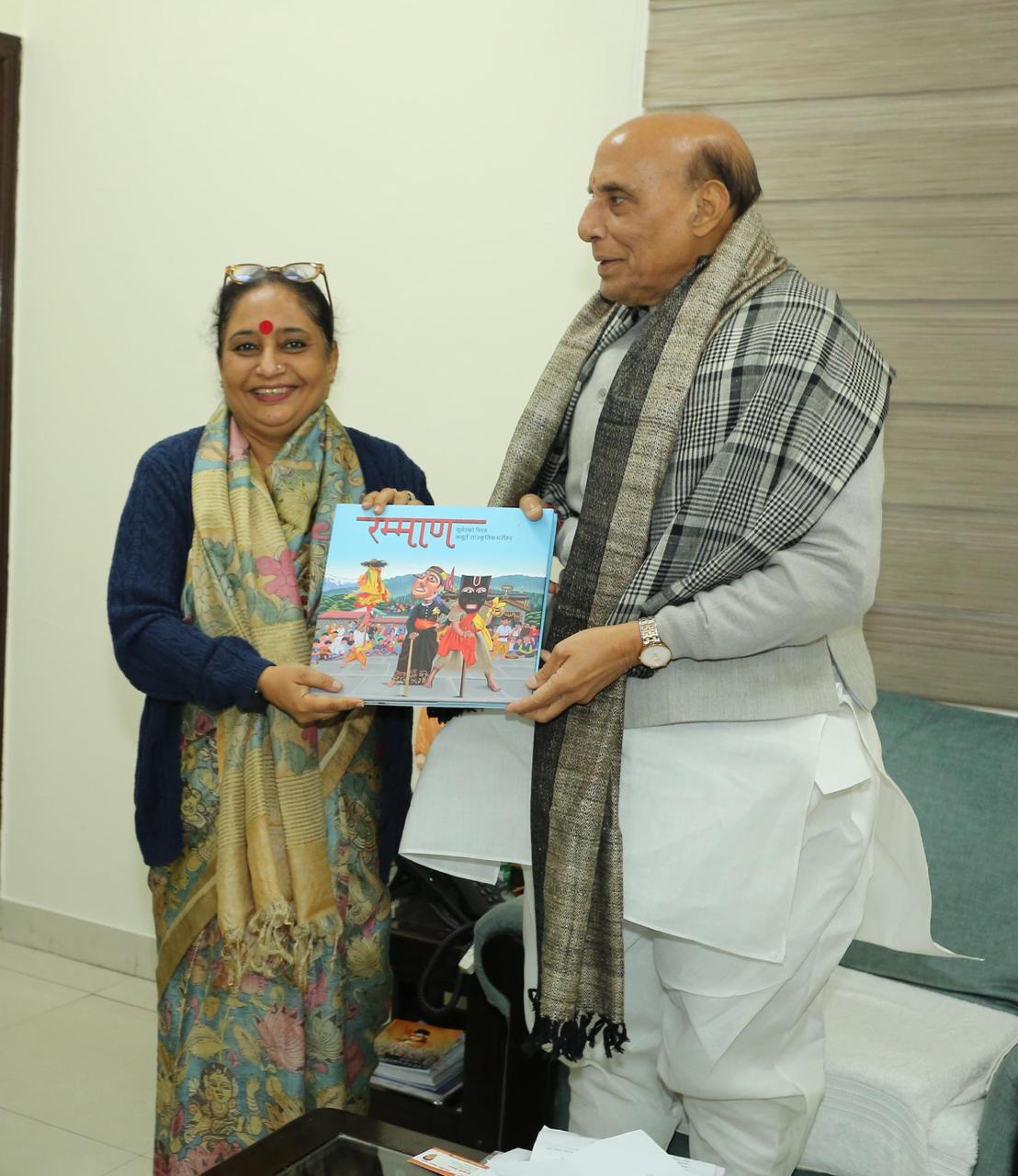 उत्तराखंड विधानसभा अध्यक्ष श्रीमती ऋतु खण्डूडी भूषण ने आज नई दिल्ली स्थित शासकीय आवास पर देश के माननीय केंद्रीय रक्षा मंत्री आदरणीय श्री राजनाथ सिंह जी से शिष्टाचार भेंट की। भेंट के दौरान विधानसभा अध्यक्ष श्रीमती ऋतु खण्डूडी भूषण ने उत्तराखंड के विश्वविख्यात लोकनाट्य रम्माण पर आधारित पुस्तक माननीय रक्षा मंत्री को भेंट की तथा इसके सांस्कृतिक महत्व, परंपरा और विस्तार पर विस्तार से चर्चा की।