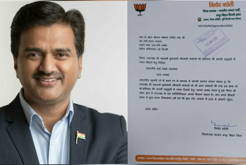 उत्तराखंड में सदियों से बोली और लिखी जा रही गढ़वाली-कुमाऊंनी और जौनसारी भाषाओं के संविधान की आठवीं अनुसूची में शामिल होने की आस एक बार फिर से जगने लगी है। जिसके लिए सामजसेवी एवं दिल्ली मयूर विहार भाजपा जिलाध्यक्ष डा.विनोद बछेती ने बड़ी पहल करते हुए प्रधानमंत्री नरेंद्र मोदी,केंद्रीय गृह मंत्री अमित शाह और भारतीय जनता पार्टी के राष्ट्रीय अध्यक्ष जे.पी. नड्डा को पत्र लिखा है।