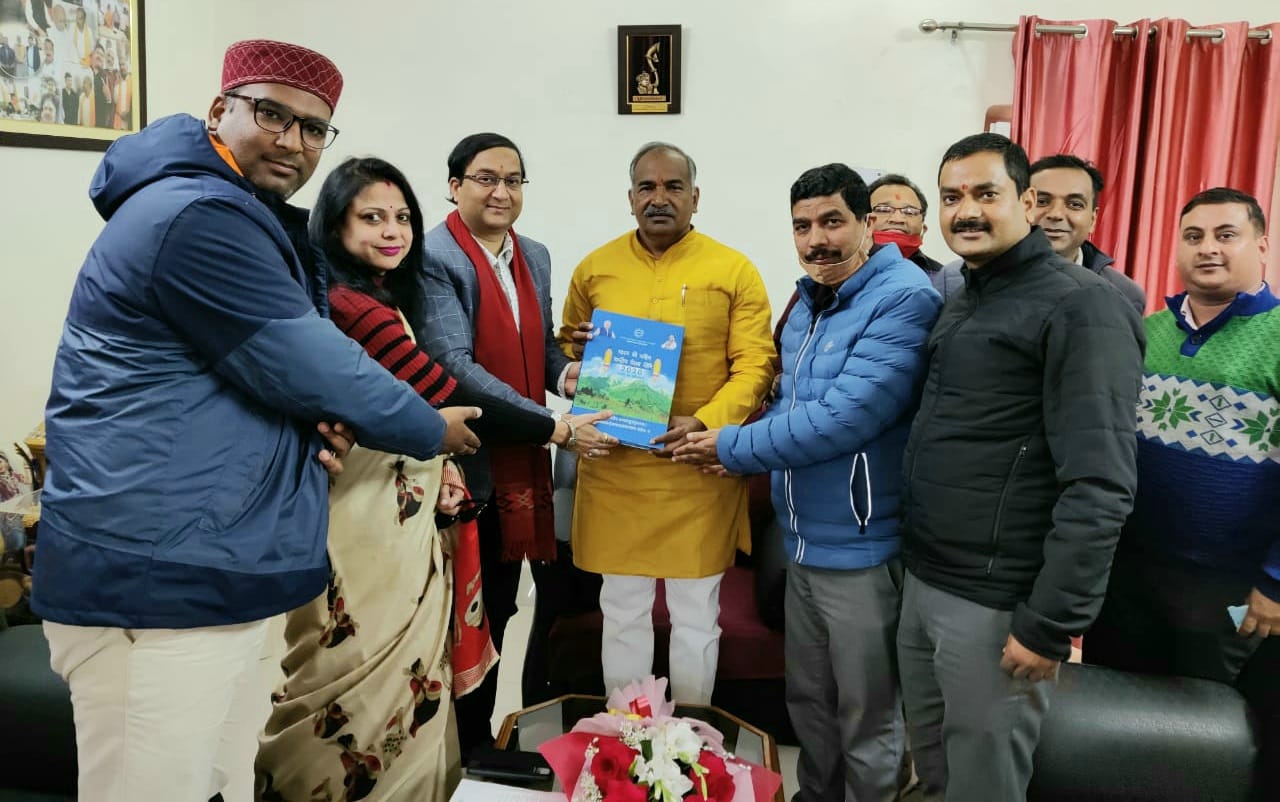 पब्लिक रिलेशंस सोसाइटी ऑफ इंडिया, के देहरादून चैप्टर के प्रतिनिधिमण्डल ने मंगलवार को शिक्षा मंत्री अरविन्द पाण्डेय के यमुना कालोनी स्थित आवास पर भेंट की। इस अवसर पर पीआरएस.आई. देहरादून चैप्टर द्वारा प्रकाशित- “भारत की नवीन राष्ट्रीय शिक्षा नीति-2020 : नवयुग का अभिनन्दन“ की प्रति राज्य शिक्षा मंत्री को भेंट की गई।