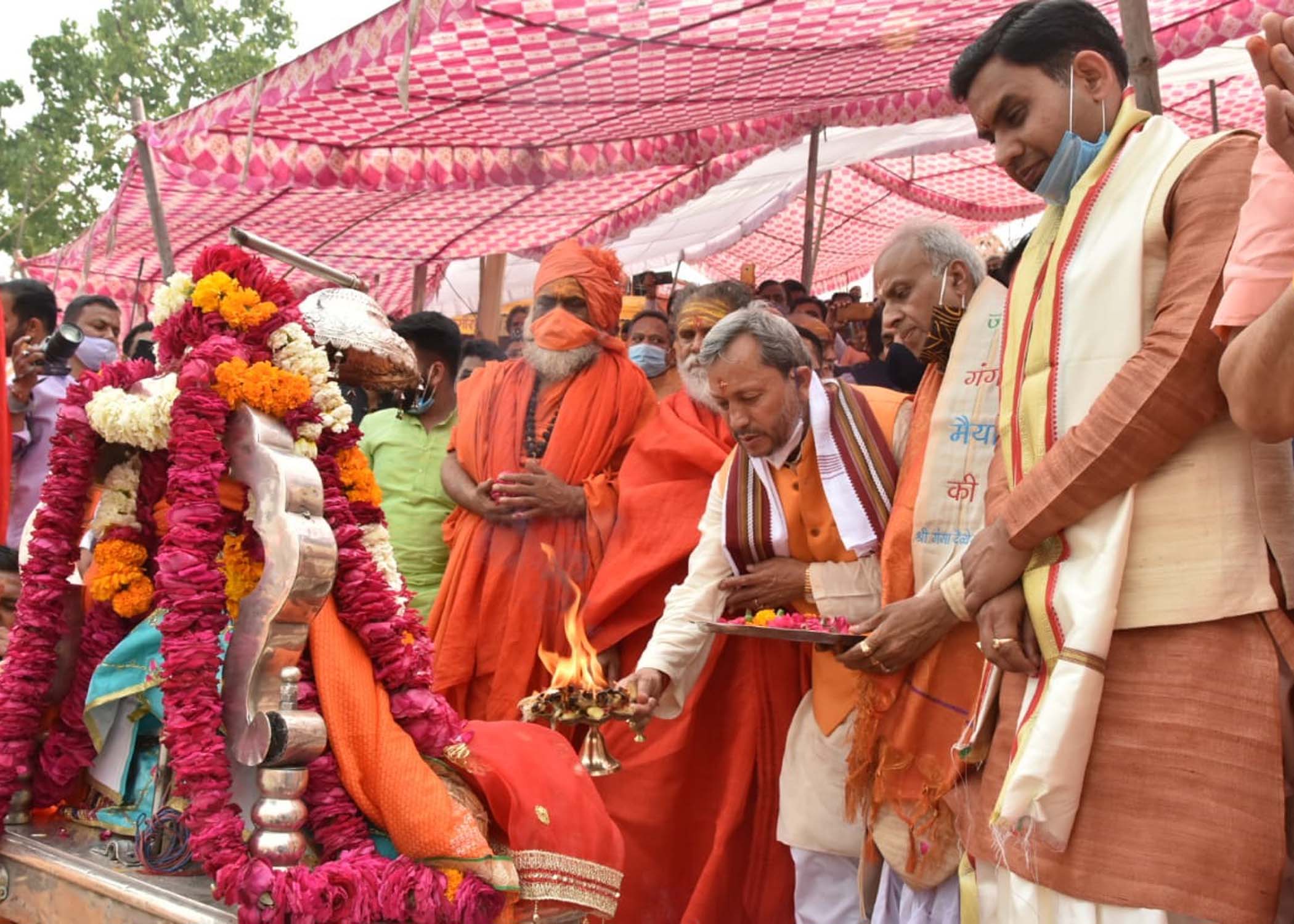 मुख्यमंत्री तीरथ सिंह रावत जी ने हर की पैड़ी हरिद्वार में श्री गंगा सभा द्वारा आयोजित गंगा महापूजन कार्यक्रम में भाग लिया। महापूजन का आयोजन कुंभ मेले के सफल आयोजन के  उद्देश्य से किया गया। मुख्यमंत्री श्री तीरथ सिंह रावत जी ने कहा कि दिव्य और भव्य के साथ ही सुरक्षित कुंभ का आयोजन करने के लिए सरकार संकल्पित है। हरिद्वार के तीन संस्कृत महाविद्यालयों से आए 151 आचार्यों ने महापूजन के दौरान चारों ओर से मंत्रोच्चारण और शंखनाद किया। विधानसभाध्यक्ष प्रेम चंद्र अग्रवाल, सभी 13 अखाड़ों के प्रतिनिधि, मुख्य सचिव ओमप्रकाश, मेलाधिकारी दीपक रावत, आईजी कुंभ संजय गुंज्याल, डीएम हरिद्वार सी रविशंकर,  एसएसपी जन्मेजय खंडूरी समेत पुलिस–प्रशासन के अधिकारी इस मौके पर मौजूद रहे।