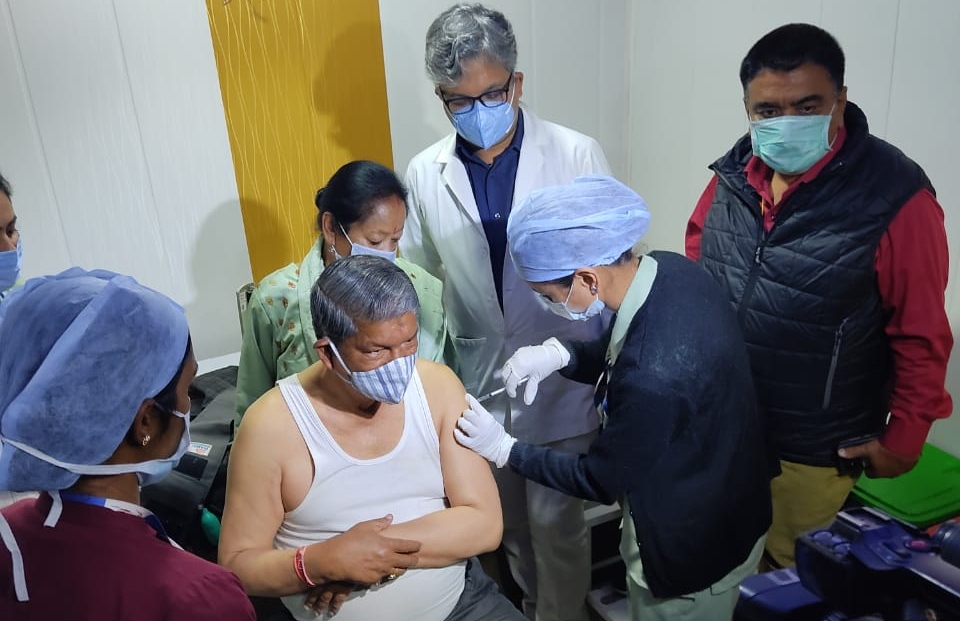 कांग्रेस के राष्ट्रीय महासचिव व पूर्व सीएम हरीश रावत ने दून में कोविड वैक्सीन लगवाई।उनके साथ उनकी पत्नी रेणुका रावत भी अस्पताल पहुंची थीं। पूर्व मुख्यमंत्री ने वैक्सीन लगवाने के बाद आम जन से भी वैक्सीन लगवाने की अपील की।