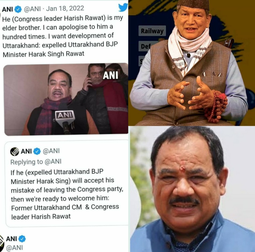 उत्तराखंड विधानसभा चुनाव से ठीक पहले भाजपा से निष्कासित किए गए पूर्व कैबिनेट मंत्री हरक सिंह रावत कांग्रेस का हाथ थाम सकते हैं। हरक सिंह रावत के साथ उनकी बहू अनुकृति भी कांग्रेस जॉइन करेंगी। रावत अपनी बहू के साथ आज दिल्ली में पार्टी के बड़े नेताओं की मौजूदगी में कांग्रेस का हाथ थामेंगे। वहीं हरक सिंह रावत ने मंगलवार को मीडिया से कहा कि मैंने आज सुबह कांग्रेस पार्टी के नेताओं से बात की है। वह मुझे जल्द ही अपना निर्णय बताएंगे और मैं उसी के आधार पर अपने फैसले लूंगा। उन्होंने कहा कि वह हरीश रावत मेरे बड़े भाई हैं। मैं उनसे सौ बार माफी मांग सकता है। मैं उत्तराखंड का विकास चाहता हूं।