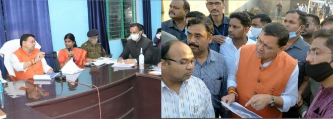 मुख्यमंत्री पुष्कर सिंह धामी आज अपने एक दिवसीय दौरे पर खटीमा पहुंचकर क्षेत्र में किये जा रहे विभिन्न कार्यों का स्थलीय निरीक्षण कर सम्बन्धित अधिकारियों के साथ तहसील खटीमा के सभागार में समीक्षा बैठक ली। उन्होंने अधिकारियों को निर्देश दिये कि जो भी विकास कार्य होने हैं उन्हें शीघ्र प्राथमिकता एवं जनहित को देखते हुये प्रारंभ करें एवं जो विकास कार्य प्रगति पर है उनमें गुणवत्ता, पारदर्शिता के शीघ्र पूर्ण करना सुनिश्चित करें। उन्होंने अधिशासी अभियन्ता लोनिवि को निर्देश दिए हैं कि सड़को को गड्डामुक्त करने हेतु पैचवर्क का शीघ्र पूर्ण करें व जिन मार्गों का स्टीमेट नहीं बना है उनका तत्काल स्टीमेट बना कर शासन को प्रस्तुत करें। उन्होंने विकास प्राधिकरण द्वारा किये जा रहे शॉपिंग कॉम्प्लेक्स, बस अड्डा, कुष्ठ आश्रम, तहसील का सौन्दर्य करण आदि विभिन्न विकास कार्यों की विस्तृत रूप से जानकारी लेते हुए शीघ्र कार्य पूर्ण करने के निर्देश दिए। उन्होंने जल निगम व जल संस्थान के कार्यों की समीक्षा करते हुए सम्बंधित अधिकारियों को निर्देश दिए हैं कि कार्यों को विकास कार्यों को तेजी से पूर्ण करें। उन्होंने स्वास्थ्य, विद्युत, पुलिस आदि विभागों की समीक्षा की। उन्होंने सम्बंधित अधिकारियों को निर्देश देते हुए कहा कि विभाग अपने कार्यों को तेजी से पूर्ण करें इसमें किसी भी प्रकार की स्थिलता न बरती जाए।