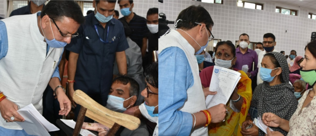 मुख्यमंत्री पुष्कर सिंह धामी ने सीएम आवास में आयोजित जनता मिलन कार्यक्रम में बङी संख्या में आए लोगों की शिकायतों और समस्याओं को सुना और मौके पर ही अधिकारियों को उनके निस्तारण के निर्देश दिये। जनता मिलन कार्यक्रम में आए सभी लोगों की शिकायतों का पंजीकरण किया गया और उन्हें रजिस्टर में दर्ज किया गया। मुख्यमंत्री ने एक-एक कर सभी की शिकायतों को पूरी गम्भीरता से सुना। उन्होंने संबंधित अधिकारियों को जन समस्याओं और शिकायतो का निस्तारण सुनिश्चित करने के निर्देश दिये। अपनी समस्याएं लेकर आने वालों में कुछ दिव्यांग भी थे। मुख्यमंत्री खुद उनके पास गये और उनकी शिकायतों की जानकारी ली।