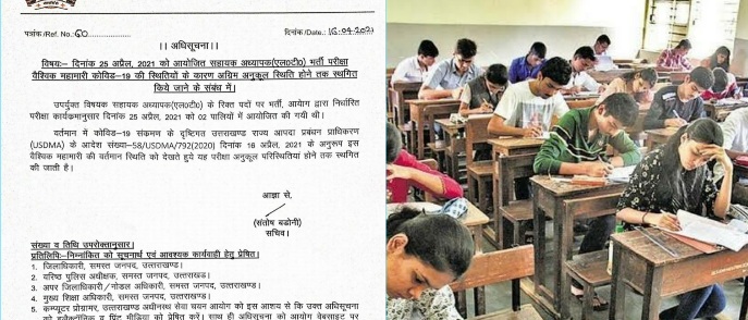 इस सम्बंध में उत्तराखण्ड अधीनस्थ चयन आयोग के सचिव संतोष बडोनी ने जीओ जारी करते हुये कहा है कि यह परीक्षा आगामी 25 अप्रैल 2021को दो पालियों में आयोजित की गई थी लेकिन पूरे विश्व, हमारे देश व उत्तराखंड प्रदेश में कोरोना संक्रमण के तेजी से बढ़ते मामलों का संज्ञान लेते हुए परीक्षा अनुकूल परिस्थिति होने तक रोक दी है। उन्होंने बताया कि इस सम्बंध में उन्हें उत्तराखण्ड राज्य आपदा प्रबन्धन विभाग से कोविड 19 के दृष्टिगत पत्र मिला था जिसका फौरन संज्ञान लिया गया और परीक्षा पर रोक लगा दी गयी है।