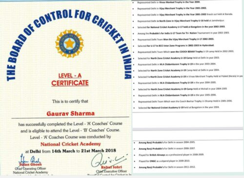 गौरव शर्मा बर्ष 2000 में वीनू मांकड़ ट्रॉफी, 2001-2 में विजय मर्चेंट ट्रॉफी, नार्थ जॉन अंडर 16 विजय मर्चेंट ट्रॉफी, नेशनल क्रिकेट अकादमी बैंगलोर हेतु सलेक्शन 2002-03, इंडिया अंडर 17 टीम ट्री नेशनल टूर्नामेंट 2002-03, अंडर 17 में दिल्ली टीम से खेला जिन्होंने 2003 में विजय मर्चेंट ट्रॉफी जीती, कूच बिहार ट्रॉफी अंडर 19 (2002-03), नार्थ जोन क्रिकेट अकादमी में चयन बर्ष 2003, एम.ए. चिदम्बरम ट्रॉफी अंडर 19 (2003-04), अंडर 19 नॉर्थ जोन क्रिकेट अकादमी में पुनः चयन 2004, एम.ए. चिदम्बरम ट्रॉफी अंडर 19 (2004-05), अंडर 19 नॉर्थ जोन क्रिकेट अकादमी में पुनः चयन 2005, एम.ए. चिदम्बरम ट्रॉफी अंडर 19 (2005-06), कूच बिहार ट्रॉफी अंडर 19 (2005-03