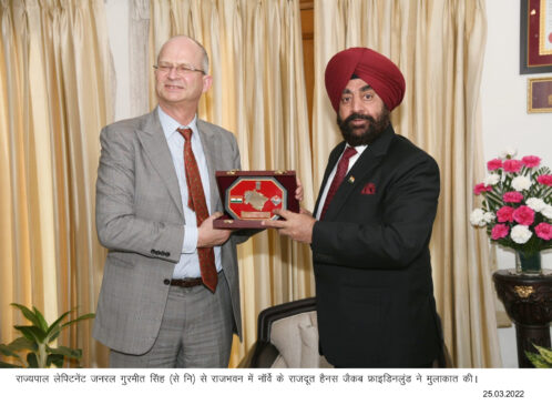 राज्यपाल लेफ्टिनेंट जनरल गुरमीत सिंह (से नि) से शुक्रवार को राजभवन में नॉर्वे के राजदूत हैनस जैकब फ्राइडिनलुंड ने मुलाकात की।
