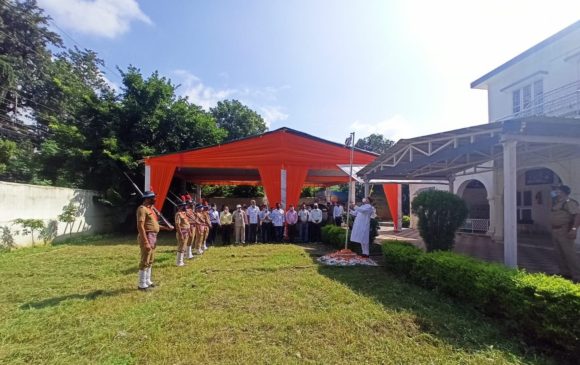 उत्तराखंड के सिंचाई, पर्यटन एवं संस्कृति मंत्री श्री सतपाल महाराज ने 15 अगस्त स्वतंत्रता दिवस के अवसर पर अपने सरकारी आवास परिसर 17 सुभाष रोड पर आज ध्वजारोहण कर राष्ट्रीय ध्वज को सलामी दी।