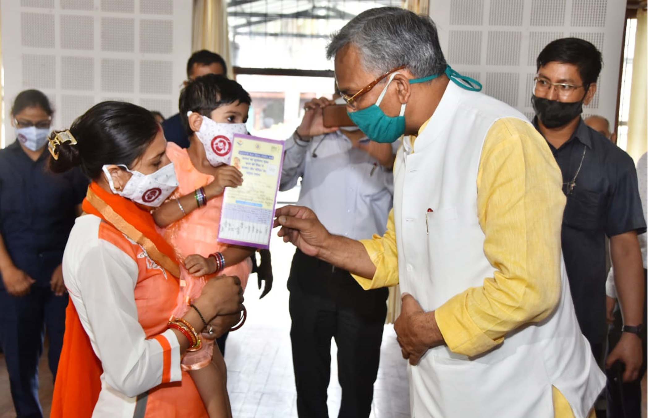 मुख्यमंत्री त्रिवेन्द्र सिंह रावत ने मुख्यमंत्री आवास स्थित जनता दर्शन हॉल में कुपोषण मुक्त उत्तराखण्ड के लिए शुरू किये गये गोद अभियान में कुपोषण मुक्त बच्चों के अभिभावकों को सम्मानित किया। वहीँ राज्यपाल श्रीमती बेबी रानी मौर्य ने गुरूवार को प्रधानमंत्री नरेन्द्र मोदी जी के जन्मदिवस के अवसर पर राजभवन परिसर में ‘‘अशोक’’ के पौधे का वृक्षारोपण किया। राज्यपाल श्रीमती मौर्य ने प्रधानमंत्री श्री नरेन्द्र मोदी जी के उत्तम स्वास्थ्य एवं दीर्घायु जीवन की कामना की है। इस अवसर पर राज्यपाल ने राजभवन के अधिकारियों व कार्मिकों को पौधे वितरित किये।