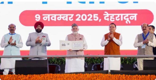 उत्तराखंड राज्य स्थापना दिवस के रजत जयंती समारोह के अवसर पर प्रधानमंत्री नरेंद्र मोदी ने देहरादून के एफआरआई मैदान में आयोजित भव्य कार्यक्रम में लिया। इस ऐतिहासिक आयोजन में पीएम मोदी ने राज्य को 8000 करोड़ रुपये से अधिक की विकास परियोजनाओं की सौगात दी, जिससे प्रदेश के इंफ्रास्ट्रक्चर और सामाजिक विकास को नई गति मिलने की उम्मीद है।