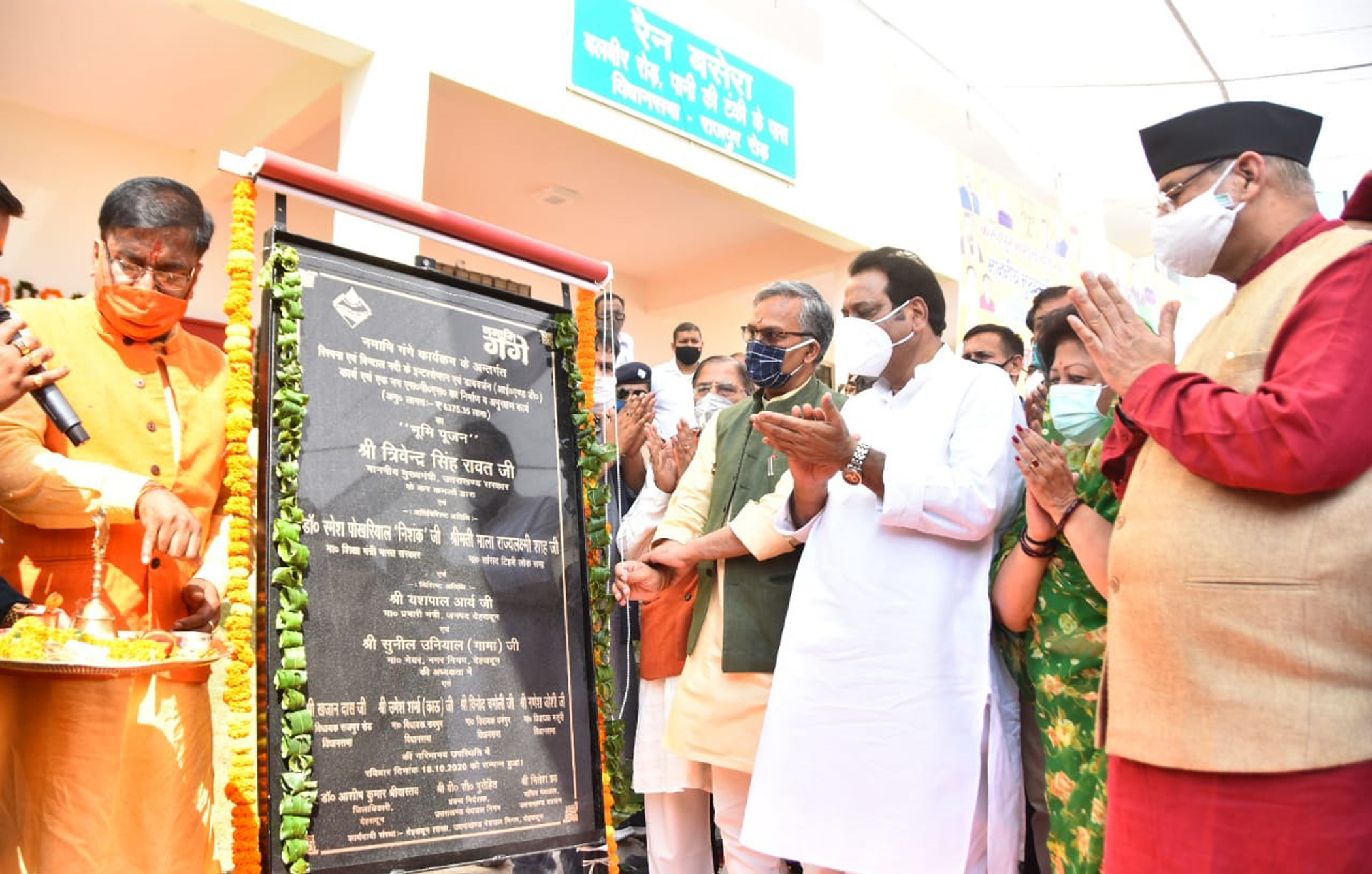 मुख्यमंत्री त्रिवेन्द्र सिंह रावत ने बलवीर रोड, देहरादून में नमामि गंगे कार्यक्रम के अन्तर्गत रिस्पना एवं बिन्दाल नदी के इन्टरसेप्शन कार्य एवं एक नग एस.पी.एस. के निर्माण एवं अनुरक्षण कार्यों हेतु अनुमानित 63.75 करोड़ के कार्यों का भूमि पूजन एवं राजपुर विधानसभा क्षेत्र के अन्तर्गत बलवीर रोड पर 1.48 करोड़ की लागत के रेन बसेरे का उद्घाटन किया। रिस्पना एवं बिन्दाल नदी पर होने वाले कार्यों में 177 नालों तथा रिस्पना नदी के तटवर्ती घरों के 2901 सीवर पाइपों को टैप कर शोधन करना, 32.40 किमी केरियर लाईन का कार्य, बिन्दाल नदी पर एक नग आई एण्ड डी संरचना, एक नग सीवर पम्पिंग स्टेशन का निर्माण एवं 15 वर्षों का अनुरक्षण एवं रखरखाव का कार्य किया जायेगा। ये कार्य नमामि गंगे योजना के तहत किये जायेंगे। इस अवसर पर मुख्यमंत्री त्रिवेन्द्र ने राजपुर विधानसभा क्षेत्र के लिए सड़कों के निर्माण हेतु 10 करोड़ रूपये देने की घोषणा की।