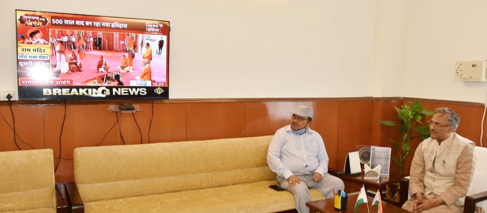 प्रधानमंत्री नरेन्द्र मोदी ने बुधवार को अयोध्या में श्रीराम मंदिर का भूमि पूजन एवं शिलान्यास किया। मुख्यमंत्री श्री त्रिवेन्द्र सिंह रावत ने श्रीराम मंदिर के भूमि पूजन का टेलीविजन पर सीधा प्रसारण देखा।