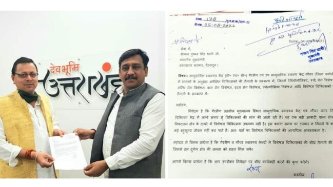 गौचर और गैरसैण के अस्पतालों में जल्द तैनात होंगे विशेषज्ञ डॉक्टर, सतीश लखेड़ा की मांग पर मुख्यमंत्री धामी ने लगाई मुहर