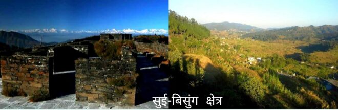 सुई-बिसुंग को ज्यादात्तर लोग शुम्भ-निशुम्भ की धरती या क्षेत्र मानने के साथ-साथ उनके नामो का अपभ्रंश मानते हैं। क्योंकि यहीं महाकाली ने भयंकर दैत्य संहार कर देवताओं को विजयी दिलाई थी। इसके प्रत्यक्ष प्रमाण शोणितपुर रूप से इस क्षेत्र को पुकारा जाना भी है क्योंकि माँ काली को दुर्गारूप देने के लिए जिस देवस्तुति का आरती गायन हुआ है उसमें इसका प्रत्यक्ष बर्णन मिलता है।