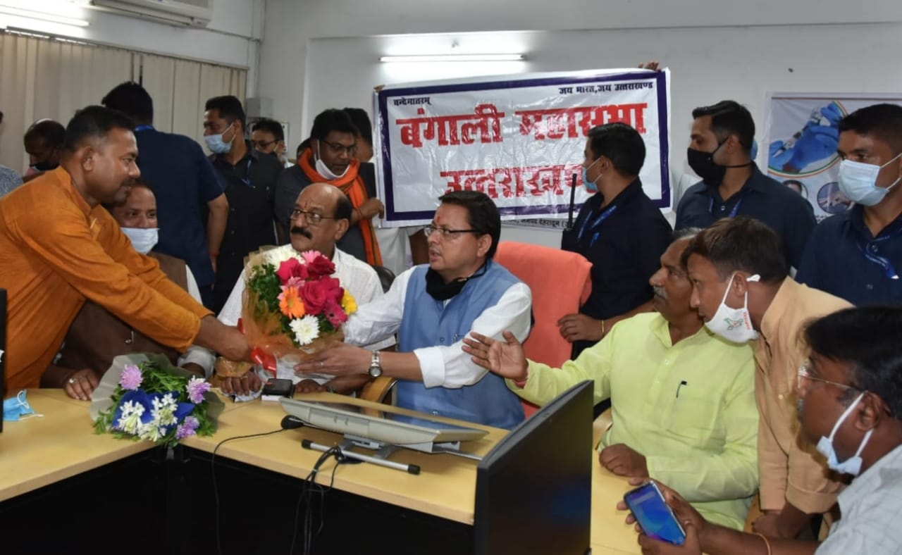 मुख्यमंत्री पुष्कर सिंह धामी से सोमवार को सचिवालय में कैबिनेट मंत्री अरविन्द पाण्डेय एवं विधायक सौरभ बहुगुणा के नेतृत्व में बड़ी संख्या में बंगाली महासभा के सदस्यों ने भेंट की। उन्होंने मुख्यमंत्री पुष्कर सिंह धामी का जनपद उधमसिंह नगर में विस्थापित बंगाली समाज को जारी किये जाने वाले जाति प्रमाण पत्र से ‘‘पूर्वी पाकिस्तान’’ शब्द हटाने के लिये उनका आभार व्यक्त किया। बंगाली समुदाय की प्रमुख मांग थी कि विस्थापित बंगाली समाज को जारी किये जाने वाले जाति प्रमाण पत्र से पूर्वी पाकिस्तान शब्द को हटा दिया जाय जिसकी वे वर्षों से मांग कर रहे हैं।