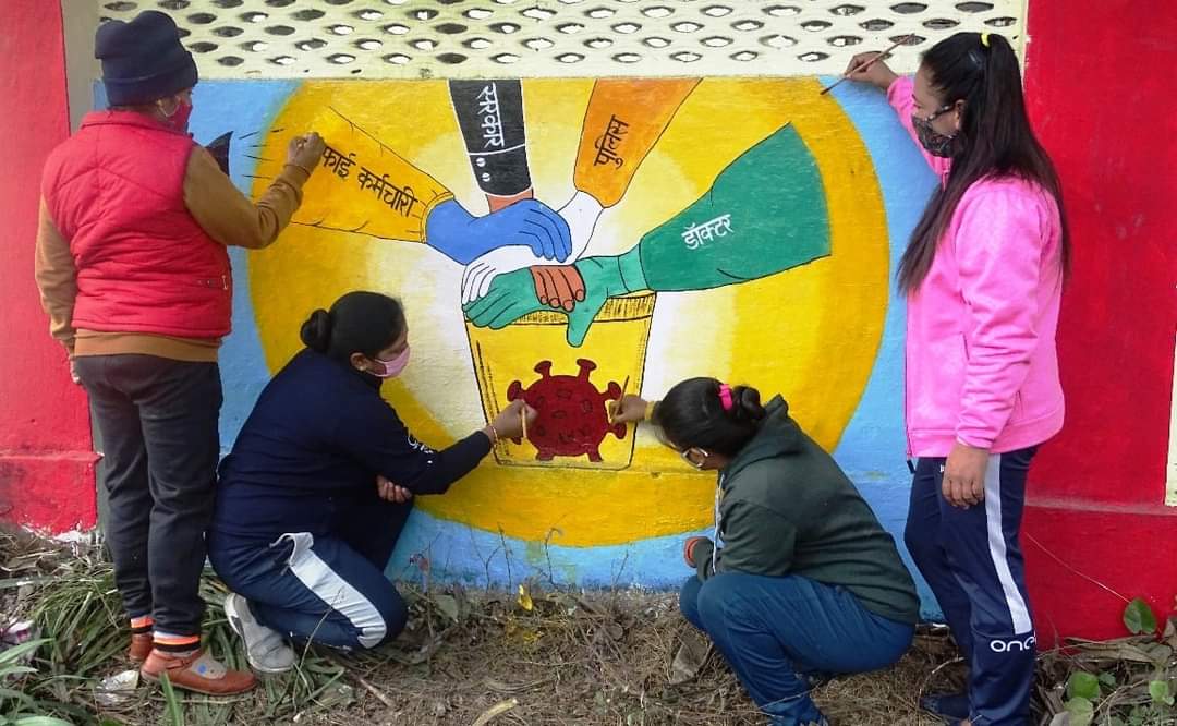 ऊधमसिंहनगर की 31 BN, P.A.C, रूद्रपुर में तैनात महिला कांस्टेबल सोनिया, अंजू, दीप्ति और शहनाज ड्यूटी के साथ ही कोरोना से बचाव का संदेश देने में जुटी हुई हैं। ये सभी पीएसी परिसर की चहारदीवारी पर कोरोना से बचाव के स्लोगन लिखने के साथ ही पेन्टिंग भी बना रही हैं। परिसर के बाहर बनाई गई पेन्टिंग सड़क से गुजरने वाले राहगीरों को कोरोना के प्रति जागरूक कर रही हैं।