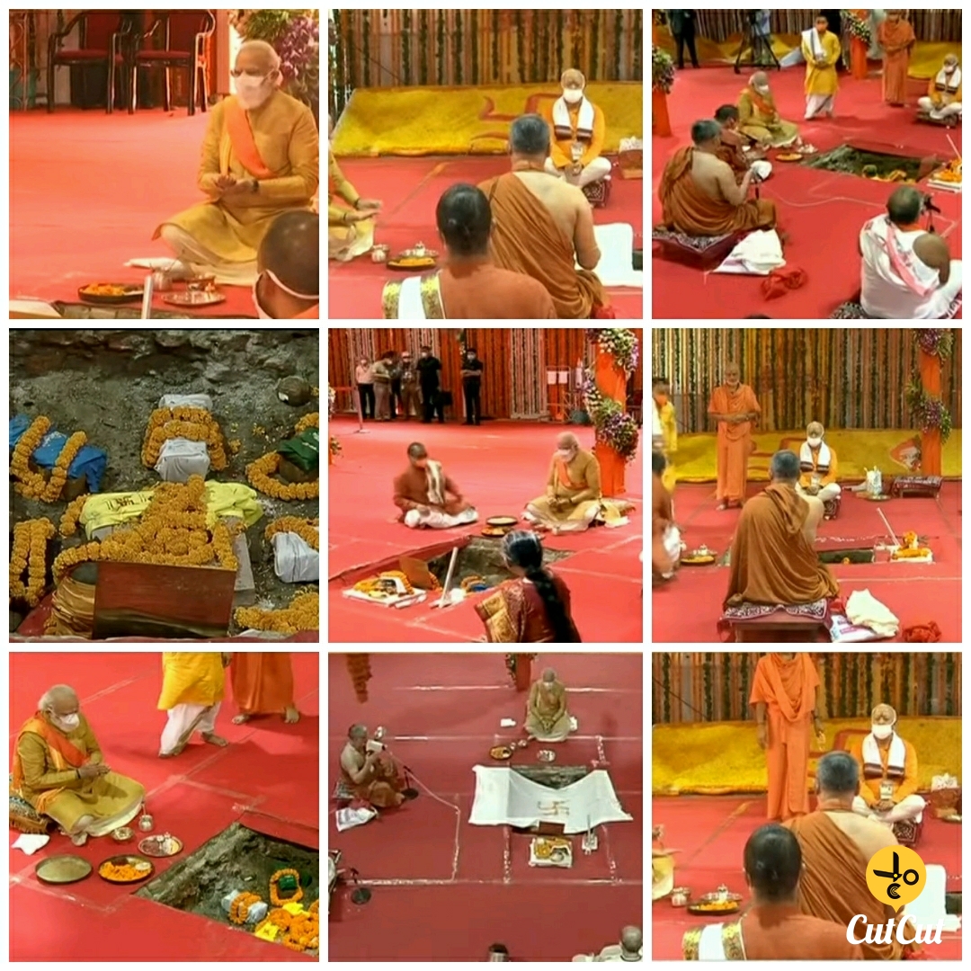 ज्ञात हो कि अयोध्या में राम मंदिर के लिए भूमि पूजन करते हुए प्रधानमंत्री नरेंद्र मोदी। इस दौरान, पीएम के साथ यूपी की राज्यपाल आनंदीबेन पटेल, प्रदेश के मुख्यमंत्री योगी आदित्यनाथ और आरएसएस प्रमुख मोहन भागवत भी मौजूद हैं, इस दौरान 170 आमंत्रित सन्त समाज व विश्व हिंदू परिषद के सुप्रसिद्व चेहरे पंडाल में उपस्थित रहे। राम सबके पुरुषोत्तम राम हैं, शायद इसी बात को ध्यान में रखते हुए राम जन्मभूमि ट्रस्ट ने किसी भी राजनेता, अभिनेता या अन्य सेलिब्रिटी को इस मौके पर निमंत्रण नहीं भेजा था।